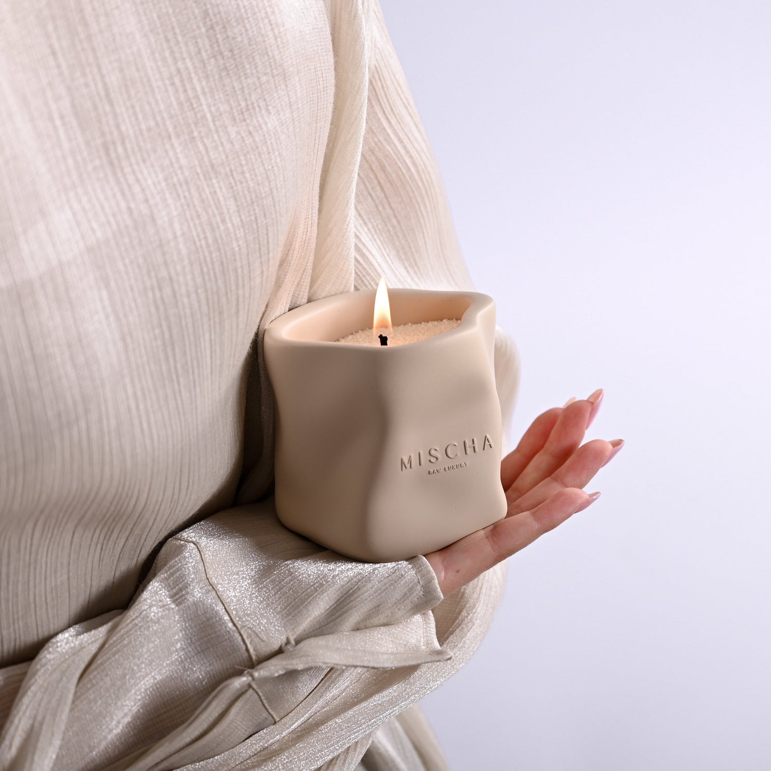 MISCHA was born from the idea that candles should do more. They should glow beautifully, last longer, and look just as stunning unlit as they do when burning. Designed by experts, our pearled candles are crafted to be a statement piece, blending art, fragrance, and luxury into something timeless.